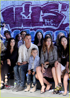 Check out Gwen Stefani's son Kingston who is looking super fresh in a striped blazer, dark denim and some vintage inspired worker boots. Can we say SOO adorable? His mom is a fashionista who dances to her own drum so its only right little Kingston follows in mommy's footsteps. Kingston accompanied his papa Gavin Rossdale to the Edun Spring 2011 show, more pics below!